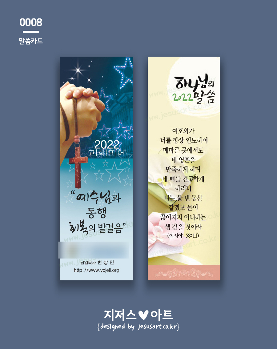 | [교회 맞춤말씀카드] 2024년 올해 주신말씀 신년말씀카드신년성구 맞춤 제작 코팅 성경 말씀 책갈피 (0) | 2023.12.21 |